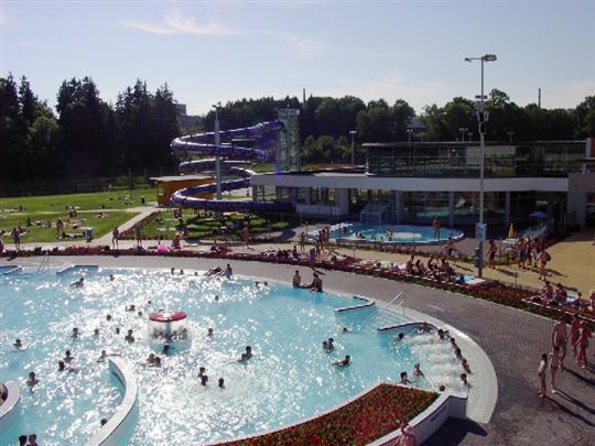 Moderní areál v Jindřichově Hradci spojil aquapark a plavecký bazén do přitažlivého vodního centra pro volný čas a rekreaci. Najdete zde velký plavecký bazén o délce 25 m s šesti plaveckými drahami, malý plavecký bazén o rozměrech 9 x 6 m. Lze zde využít služeb plavecké školy a vnitřní tobogán. Součástí areálu je i krytý bazén.