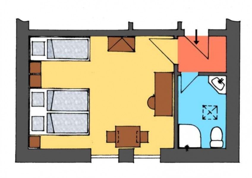 Samostatný pokoj bez kuchyně s vlastním sociálním zařízením (WC, sprcha). Ubytování je vhodné pro 2-3 osoby.